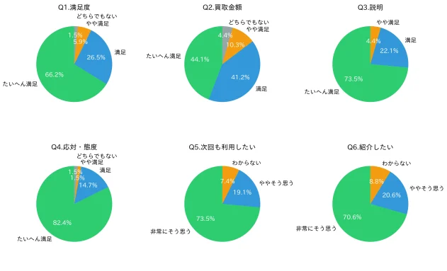 この度はご依頼をいただきましてありがとうございました。また、大変高い評価をいただきましたことも光栄でございます。「メールと電話の対応が凄く丁寧でとてもよかった」と言っていただけたことも嬉しかったです。問い合わせをしていただいた時から、お客様に満足いただけるような買取体験を提供していきたいと思います。